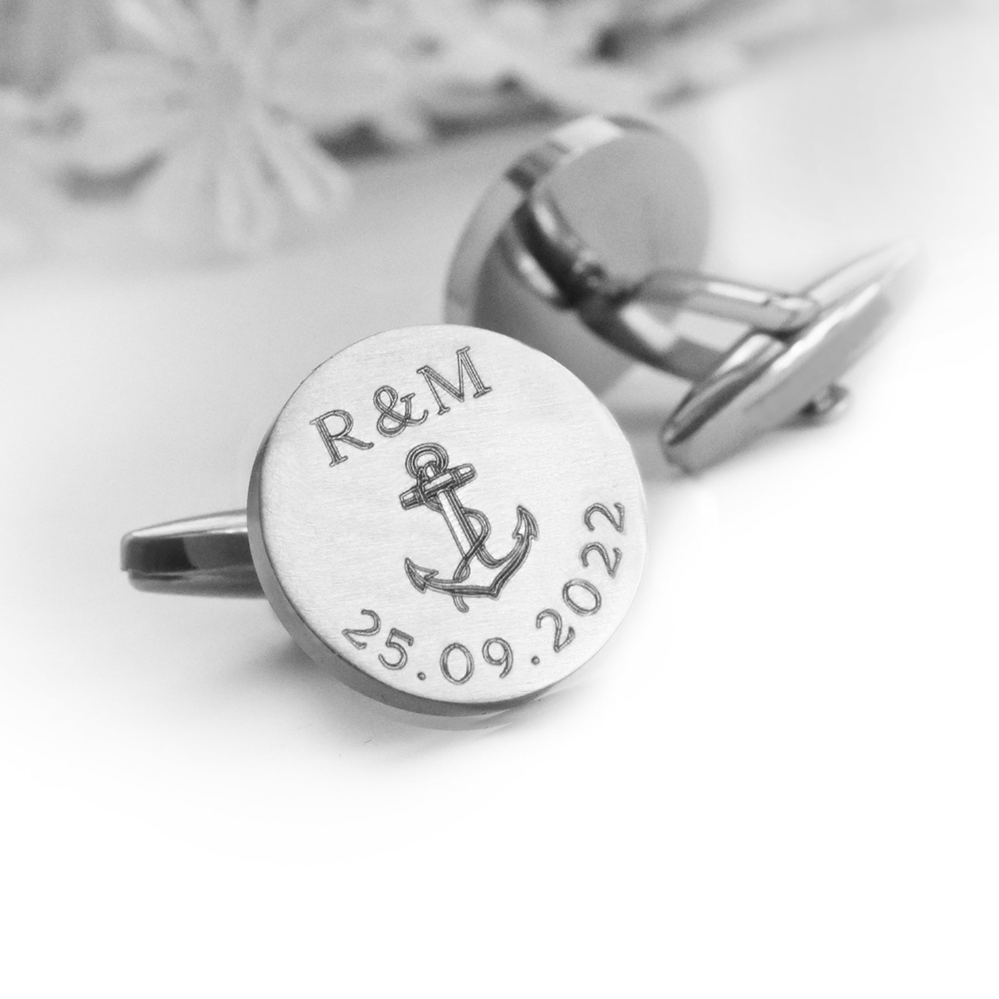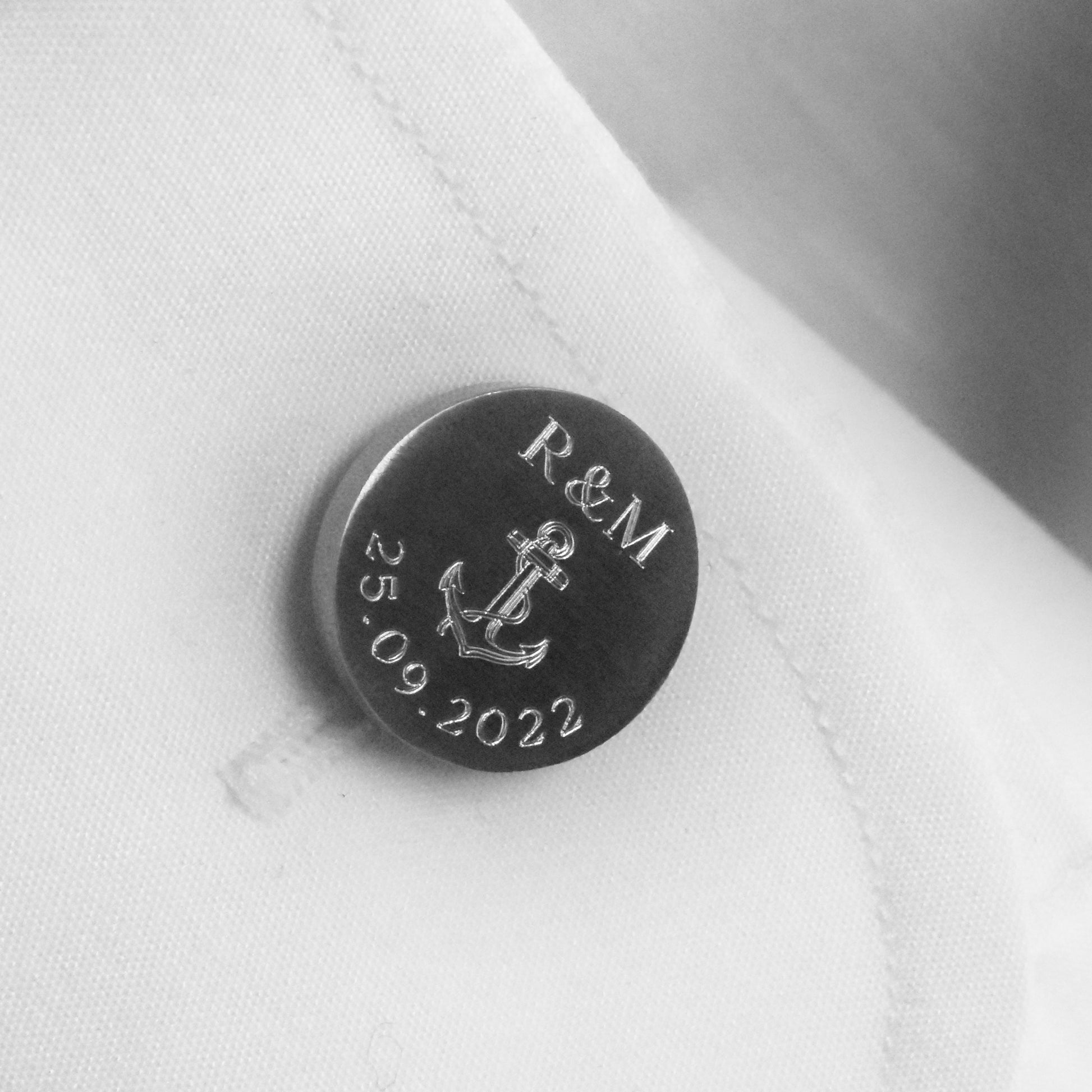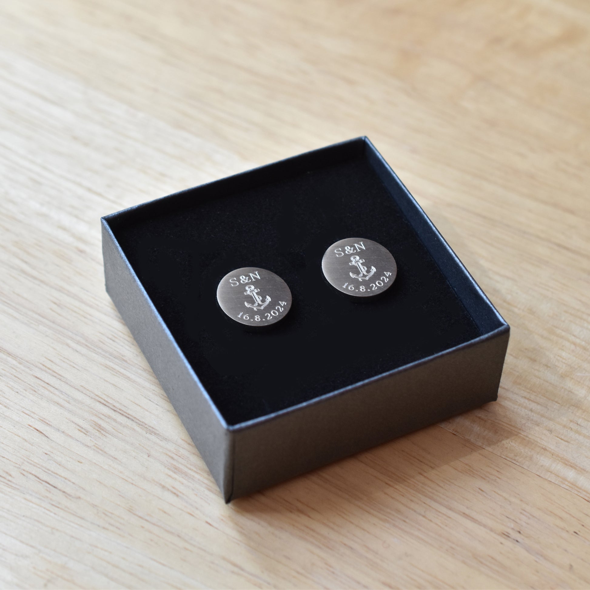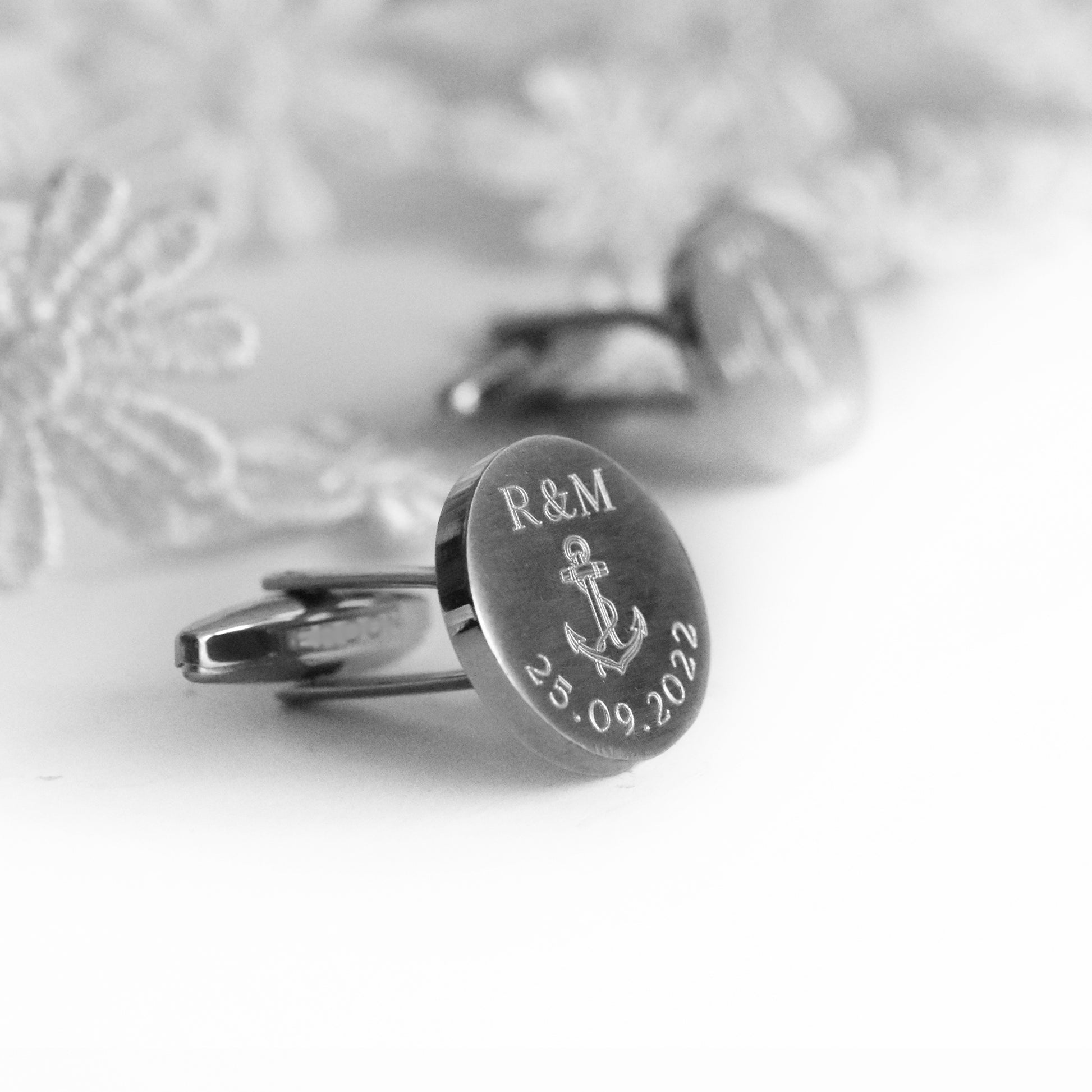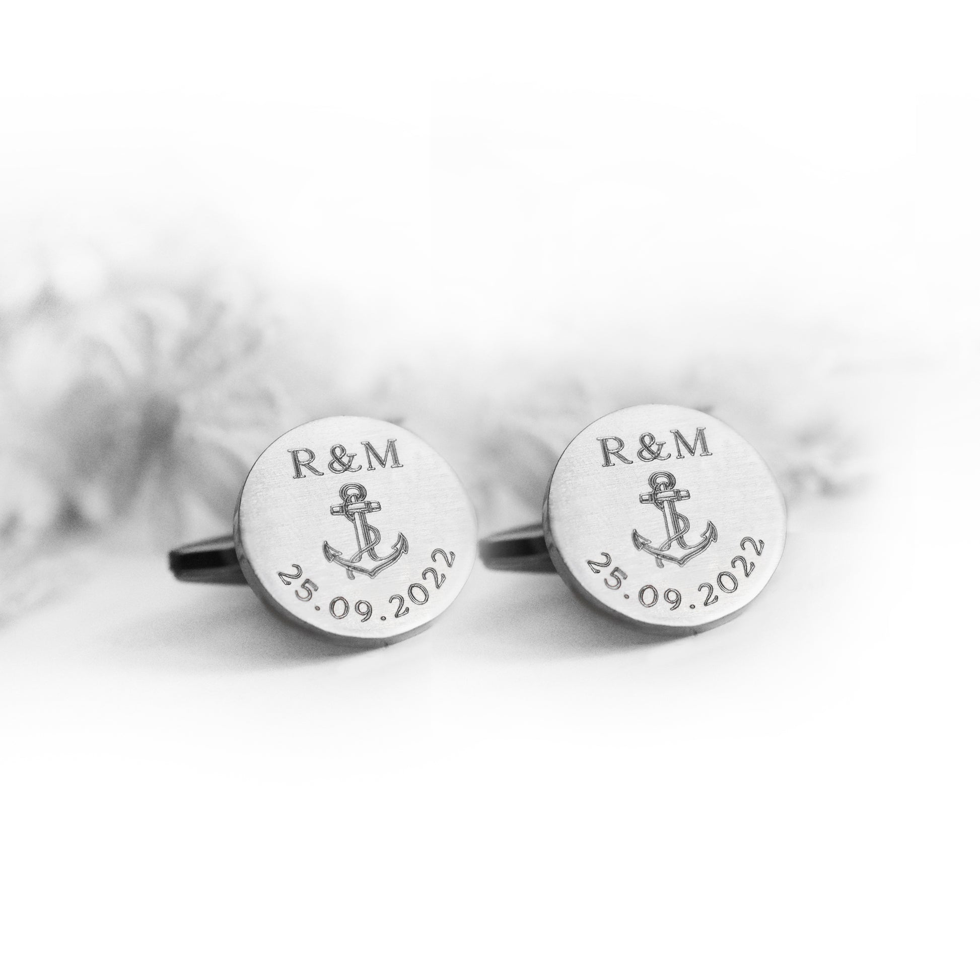 Herren Manschettenknöpfe mit Anker-Motiv | Gravur mit Initialen und Datum